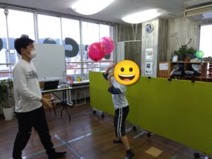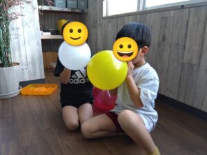 風船膨らませ~♬・・・腹筋に力を入れないと、なかなか膨らますのが難しいのですが、めげずにチャレンジしてました!!